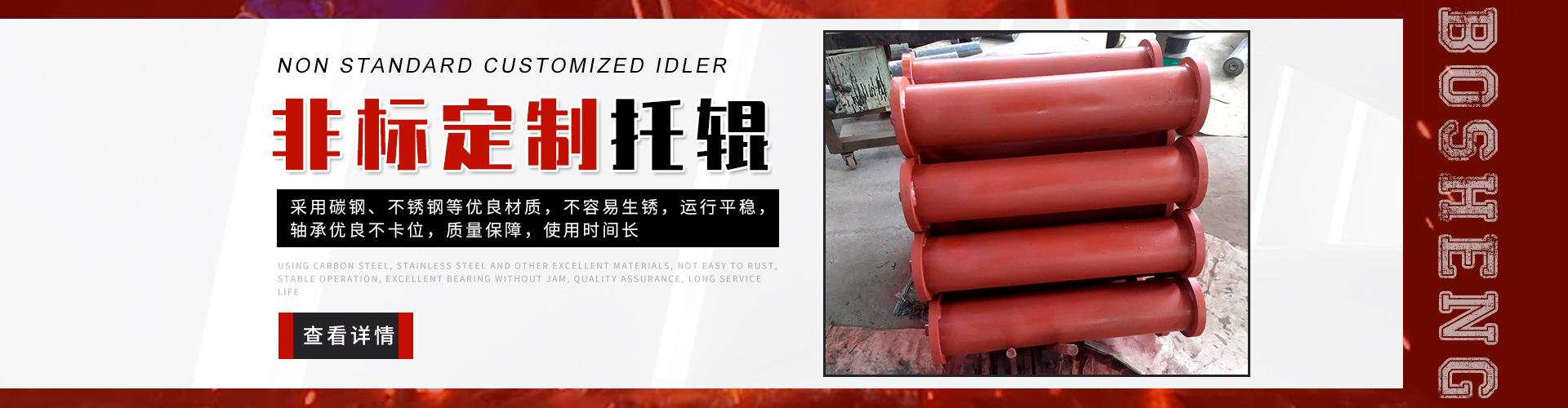 泰安博晟礦山機械有限公司位于山東泰安新泰市汶南鎮(zhèn)陳糧村。緊鄰京滬、京福、萊新高速公路。公路交通極為方便,環(huán)境優(yōu)美。公司主要生產(chǎn):托輥、托輥配件、托輥支架等皮帶輸送機配件。歡迎各界商友前來洽談考察。聯(lián)系電話:13954880316. 泰安博晟礦山機械有限公司采用國際標準設計、制造技術,將托輥的設計和制造提高到了一個更高的水平,生產(chǎn)的托輥具有小的旋轉阻力,長的壽命,小的維修工作量和高的承載能力。鋼管采用托輥專用高頻焊管,管內(nèi)做去刺處理,圓度控制在特殊的公差范圍之內(nèi)。軸是按標準公差加工的冷拉鋼制造。軸承座采用進口冷扎鋼板經(jīng)多次工藝沖壓而成。托輥管和軸承座被自動焊接機械手焊接在一起,形成一個具有很高強度的整體構造。托輥軸承采用國內(nèi)外知名品牌的大游隙深溝球雙密封軸承,使托輥具有理想的靜平衡和動平衡,其旋轉阻力優(yōu)于國標。托輥密封采用綜合國外和國內(nèi)迷宮式密封的特點進行了專門設計,內(nèi)充耐高速高溫和超低溫抗氧化鋰基酯,有效防止雜質、水、空氣對托輥內(nèi)部的侵蝕。 目前我們托輥系列產(chǎn)品有槽形上調(diào)心托輥組、槽形托輥、槽形下調(diào)心托輥組、承載托輥、緩沖托輥、回程托輥組、螺旋托輥、摩擦上調(diào)心托輥組、平行緩沖托輥組、平行上調(diào)心托輥、礦用托輥、煤礦專用托輥、梳型托輥、樹脂托輥、陶瓷托輥、橡膠托輥、錐形托輥、立輥等。規(guī)格:直徑50-219mm;長度190-2600mm。 泰安博晟礦山機械有限公司竭誠愿與廣大客戶合作,共同發(fā)展開發(fā)新技術新項目。泰安博晟礦山機械有限公司秉承